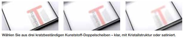 Ob als harmonische Einbindung oder als bewusster Kontrast – abgestimmt auf Fassade, Nebentür, Fenster oder Eingangstür prägen Glaselemente die Gesamtarchitektur Ihres Hauses entscheidend mit. Das Glas ist – wie alle Komponenten – extrem robust und unempfindlich gegen Kratzer und andere mechanische Einwirkungen. Auch die Vielfalt der Glastypen lässt keine Wünsche offen.